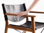 ”Deck”シリーズは、foxx chair®が持つ快適な座り心地や折りたたみ機能はそのままに、室内でも半屋外空間でも使用でき、どちらの空間にも自然に溶け込むデザインです。洗練されたインテリア性を保ちつつ、アウトドアでもその魅力を発揮します。フレームには油分を豊富に含み、高い耐水性と耐久性、美しい仕上がりを誇るチーク材を、張り地には撥水加工を施したアウドドア用のポリエステル材を採用しました。