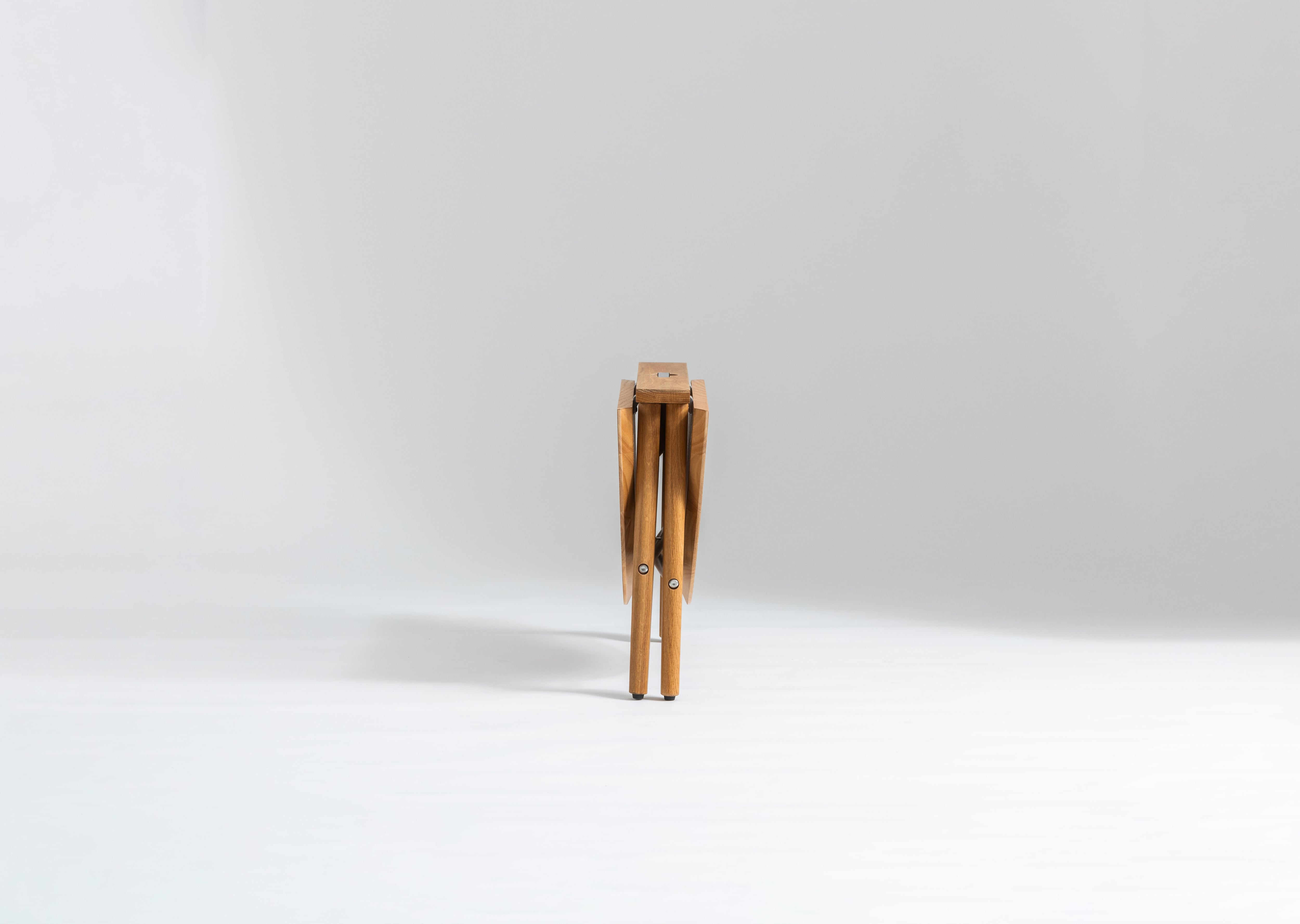 The foxx chair® series now includes a side and lounge table, designed to enrich your personal space for refined relaxation. With a unique folding mechanism and integrated die-cast handle, they offer effortless portability and elegant function. Paired with a foxx chair, they create a complete setting for quiet moments, from reading to tea time.