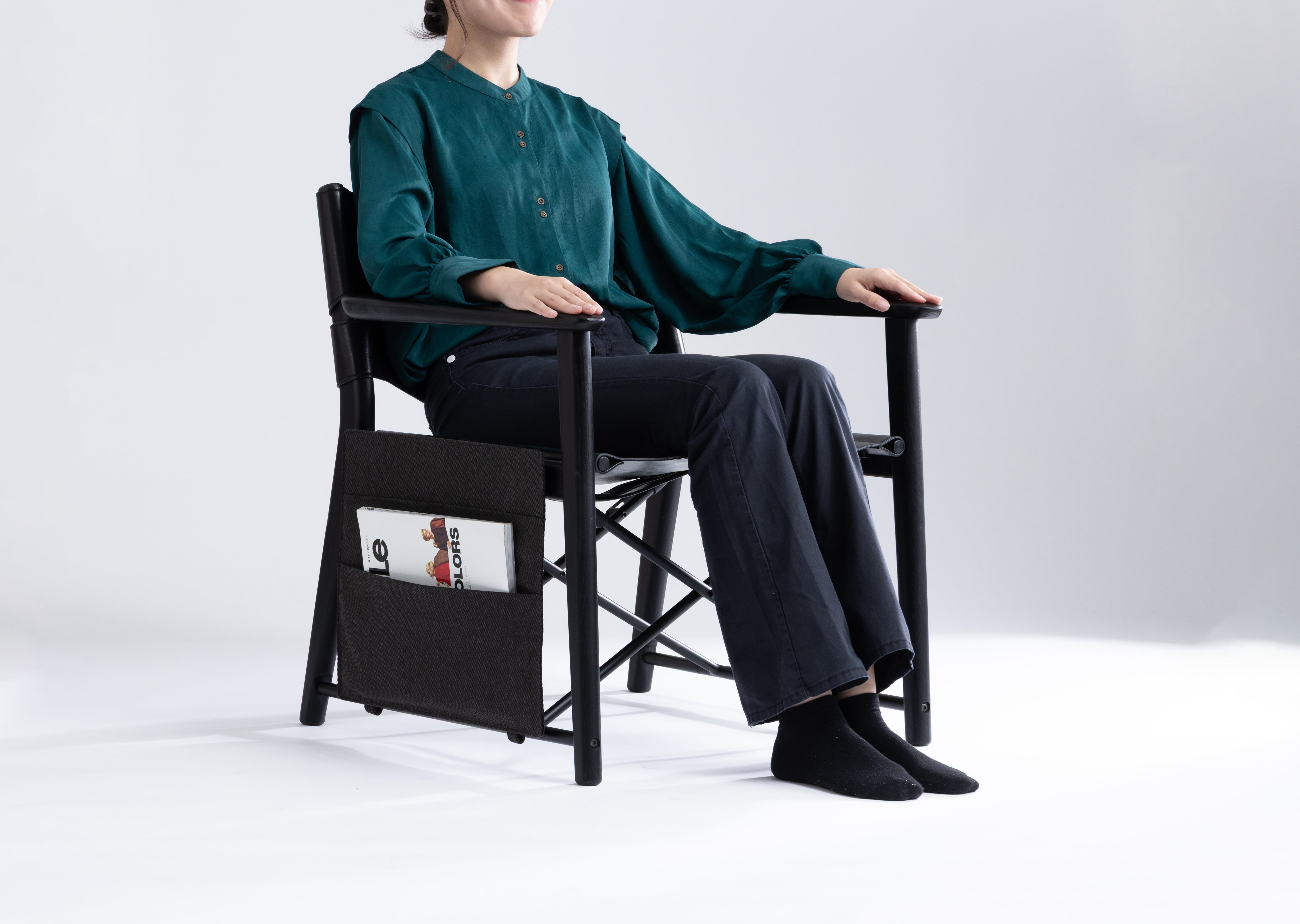 マガジンバッグは、foxx chair® の側面にスマートに取り付けられる、機能美を備えた収納アクセサリーです。室内でも屋外でも、読みかけの本やタブレット、小物類をさっとしまえる手軽さが、くつろぎの時間に心地よい余白をもたらします。素材には、アウトドアでも使用可能な撥水加工を施したポリエステル生地を採用。椅子と一体化するようなミニマルなデザインでありながら、使い手の動作に寄り添う柔らかな存在感を放ちます。